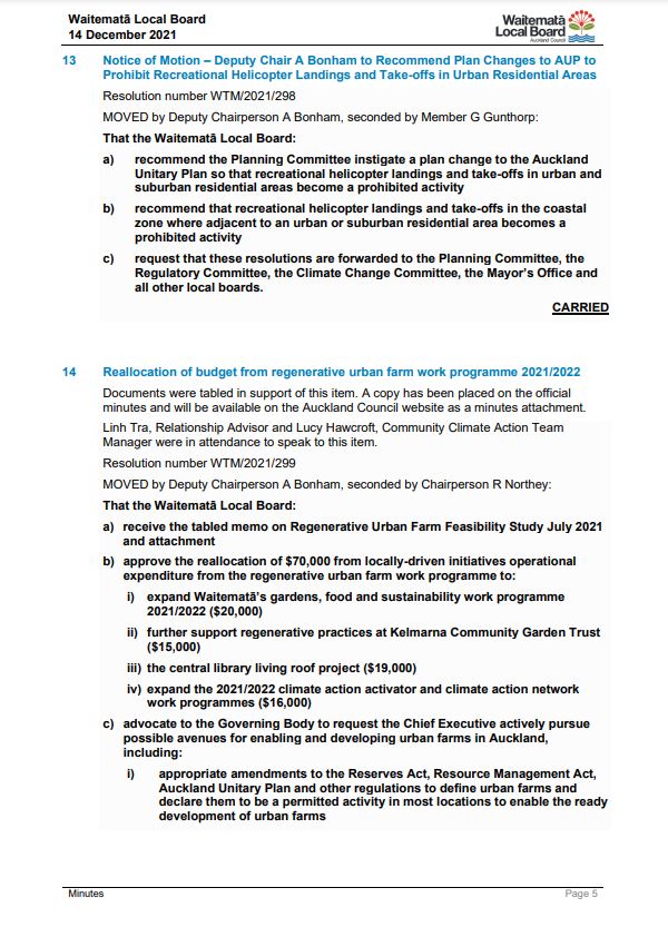 Niwa has just confirmed that 2021 was New Zealand’s hottest year on record, Mayor Goff has just admitted that Council “… are not doing enough” to reduce emissions, and the people of Waiheke Island, and the Waitemata Local Board are openly dismayed about the proliferation of helicopter transport within the region. So what then was Council’s response to Waiheke Local Board’s Notice of Motion requesting help to manage the cumulative and specific effects of helicopters on Waiheke? Let’s wait another five years before, and if, we do anything. This is outrageous. You can read the Waiheke Local Board’s response and listen to the key points of the meeting (here, here and here) in which Quiet Sky Waiheke’s Kim Whitaker and the Local Board discuss the implications of delaying change to 2026 (eg. unrestricted growth in helicopter traffic on the island) and Council’s belief that the current regulations are appropriate. Quiet Sky Waiheke will continue to campaign for peaceful skies in 2022, but to end on a lighter note, listen here for the moment during December’s Local Board meeting when a speaker cannot be heard due to an overflying helicopter! We wish you all a Happy and Safe 2022 š
