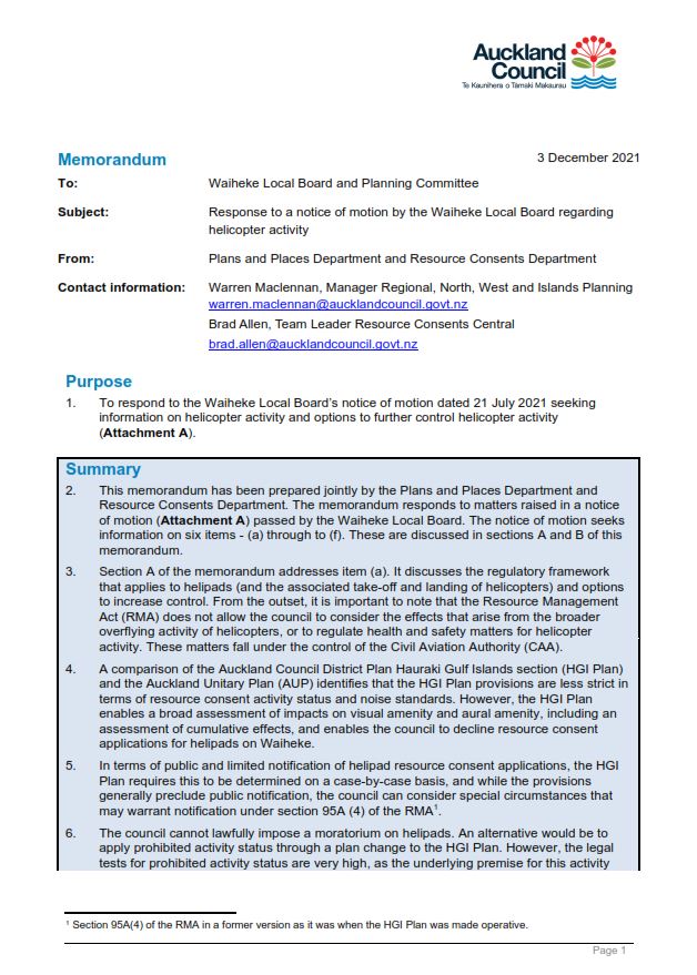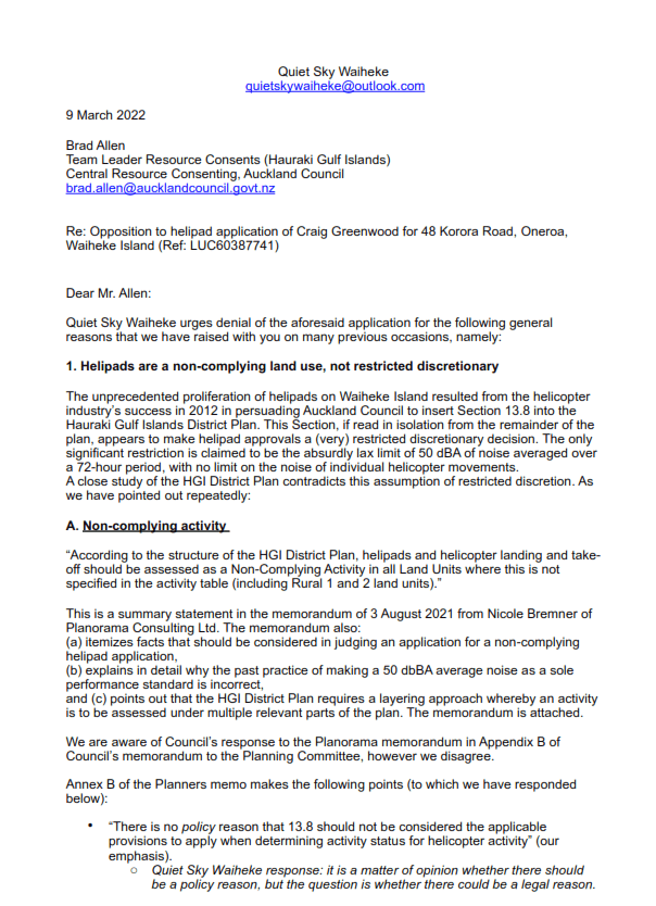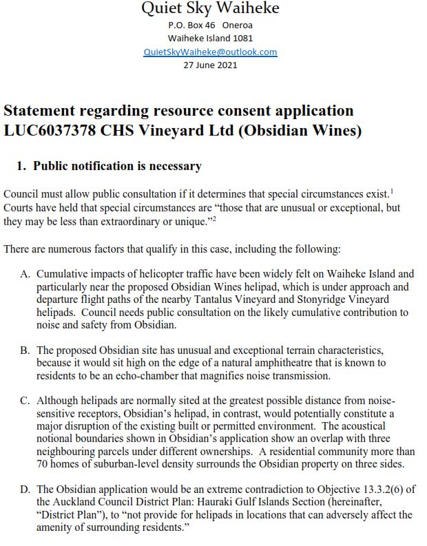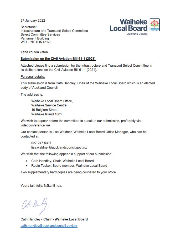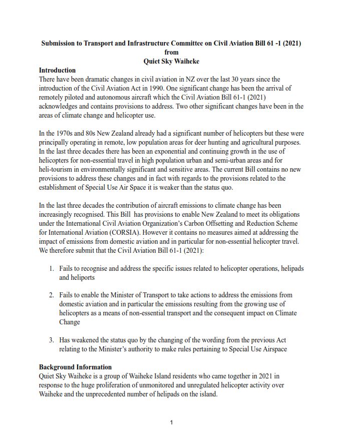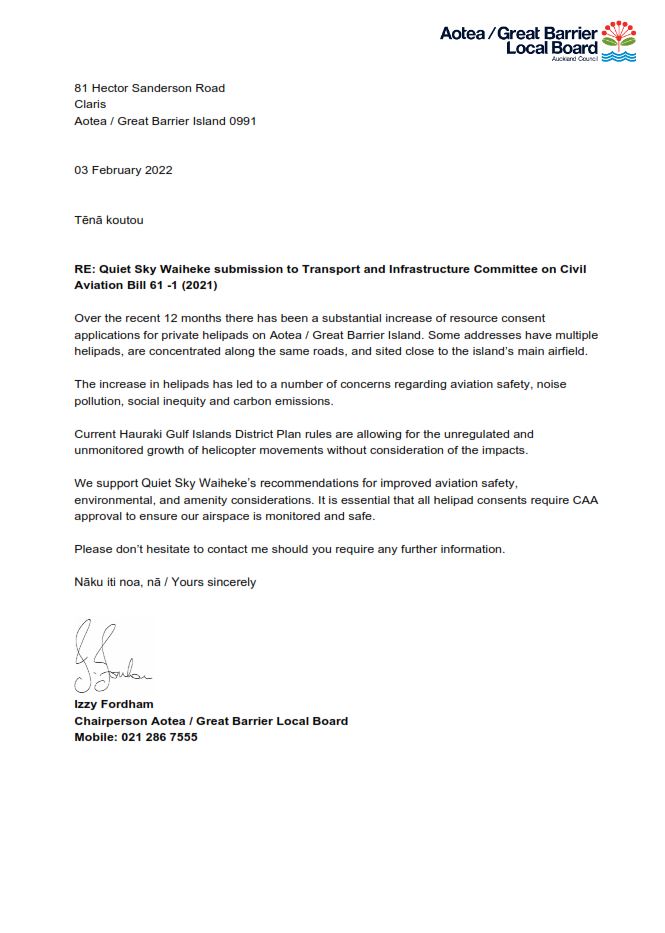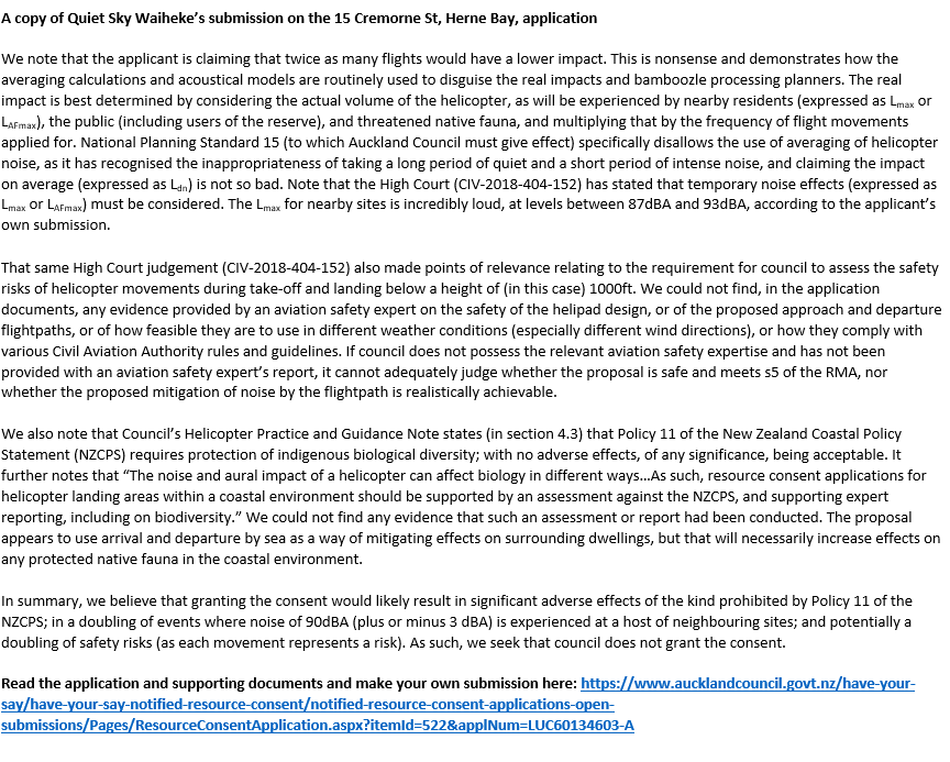 Quiet Sky Waiheke & Waiheke Local Board’s submissions on the