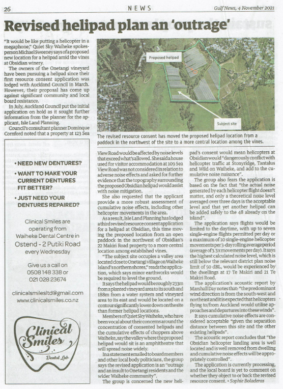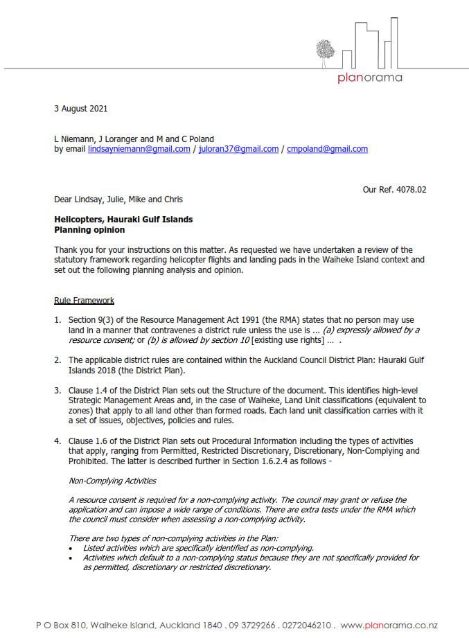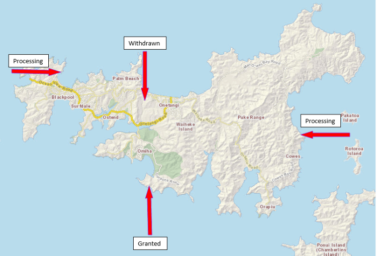 There are currently four applications for helipads on Waiheke: 345 Gordons Road, 48 Korora Road, 380A Cowes Bay Road & 22 Te Makiri Road